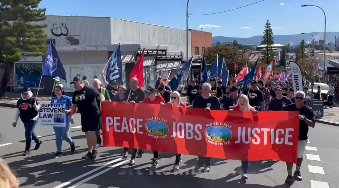 Useat tuhannet ihmiset marssivat vappumielenosoituksessa vastustaen Australian työväenpuolueen ehdotusta, jonka mukaan Port Kemblan satamasta tulisi mahdollinen tukikohta ydinsukellusveneille. Asiasta uutisoi australialainen vasemmistovihreä Green Left -julkaisu.