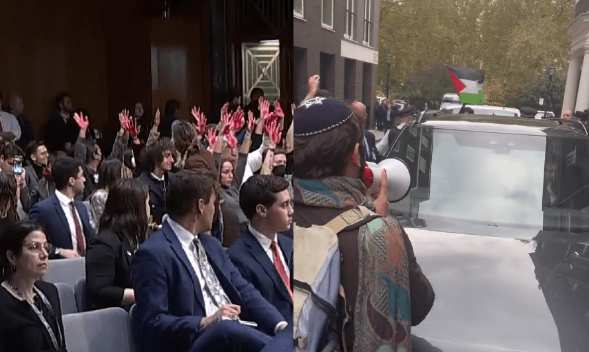 Siinä missä valtavirran poliitikot ”läntisessä” maailmassa yrittävät ohittaa Palestiinassa tapahtuvan kansanmurhan tai perustella sitä itsepuolustukseksi, tappamista vastustavat protestit eivät ota loppuakseen. Tänä tiistaina useampi palestiinalaisten kansanmurhaa tukeva poliitikko on joutunut mielenosoitusten kohteeksi.
