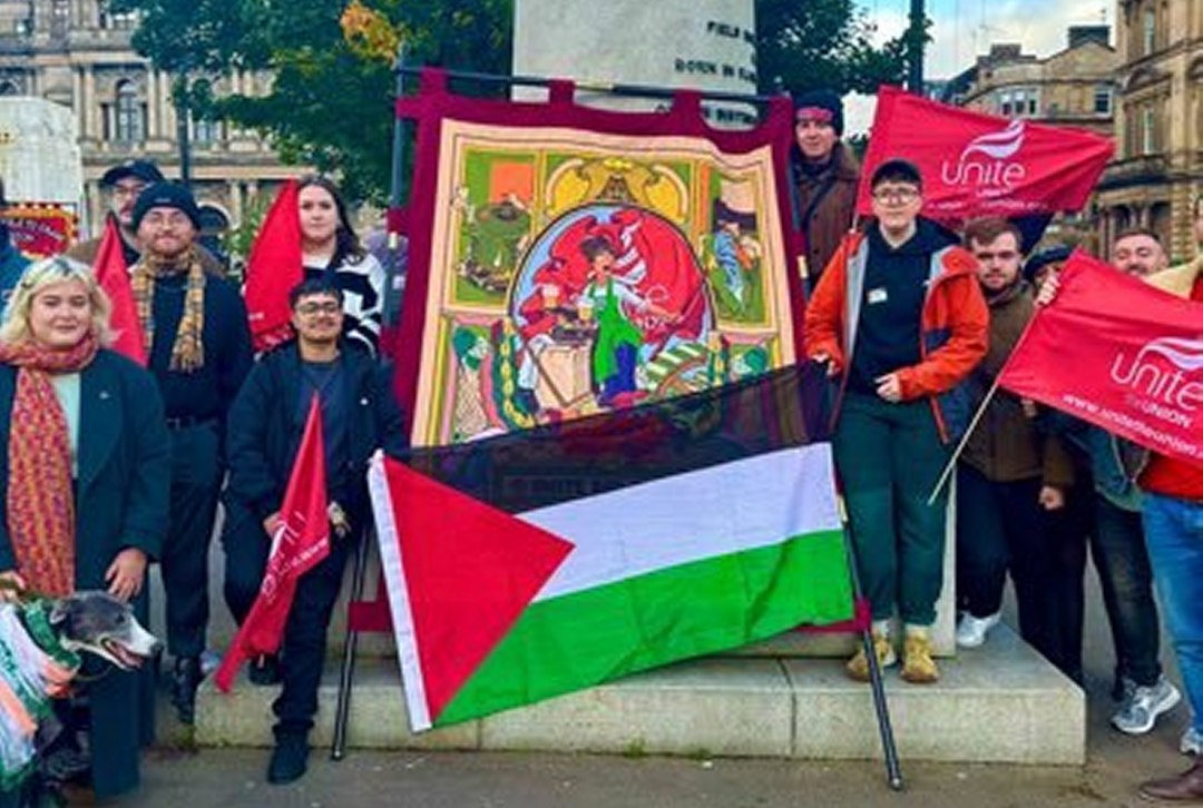 Yli kahta tuhatta alan työntekijää edustava Unite Hospitality Glasgow haluaa välittää horjumattoman tukensa ja solidaarisuutensa Gazan asukkaille ja Palestiinan kansalle Israelin ”hellittämättömän, perusteettoman ja barbaarisen” aggression aikana.