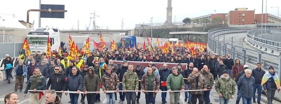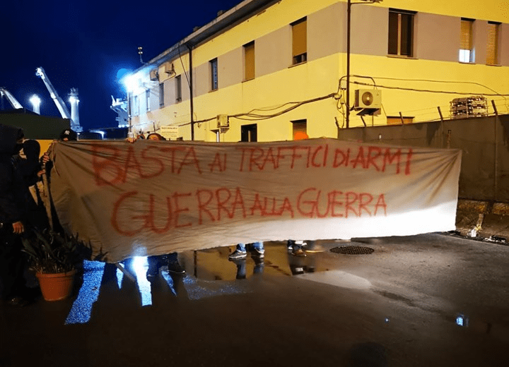 Viimeksi Genovan satamassa nähtiin massiivinen mielenosoitus helmikuussa, jonka teemoissa yhdistyivät USB-liiton kolmen työläisen kuoleman takia julistama lakko kysymykseen sodasta ja aseiden kuljetuksesta Italian satamien kautta.