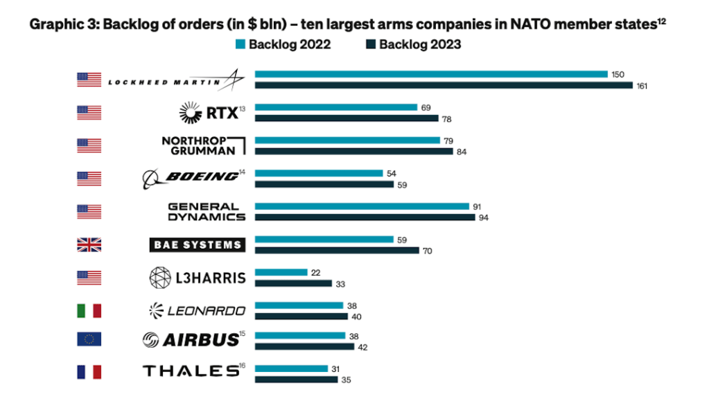 Koska hankintapäätökset, tuotanto aseiden hankintaa varten sekä tuotantokapasiteetin lisääminen ovat pitkä prosessi, sotilasbudjetin kasvu ei aina heti heijastu tuloihin ja voittoihin. Kasvavat tilauskannat osoittavat kuitenkin NATOn asekulujen vaikutukset tulevina vuosina.