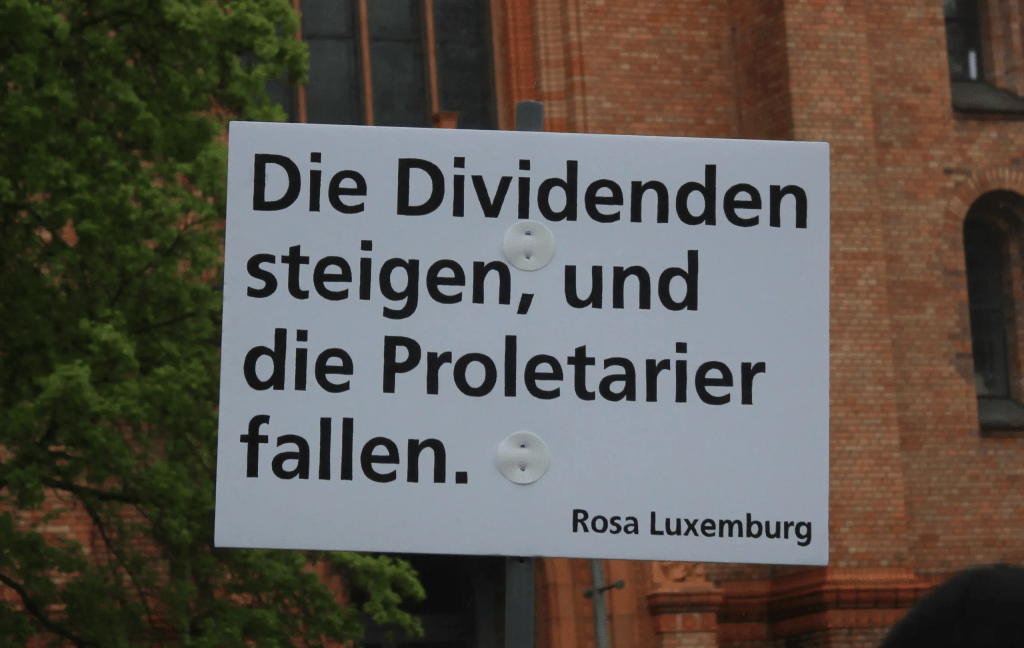 – Puolustusalan yritykset, kuten Rheinmetall, Airbus Defence ja muut tekevät ennätysvoittoja samaan aikaan kun elinkustannuksemme nousevat. Sosiaalietuuksia leikataan ja sairaaloita suljetaan. Tankeille ja raketeille rahaa on – mutta ei julkiseen liikenteeseen, päiväkoteihin, hoivapalveluihin ja sosiaaliseen asuntotuotantoon.