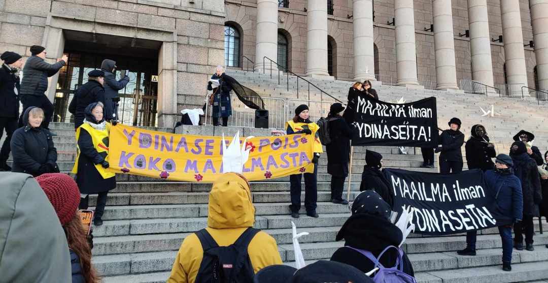 – Ydinaseet ovat kauhistuttavia joukkotuhoaseita, jotka eivät erottele sotilaita ja siviilejä. Yksikin ydinase tappaisi asutuskeskuksessa satojatuhansia, ellei miljoonia ihmisiä, järjestäjät muistuttivat.