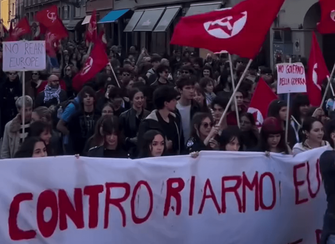 EOS-asemessuja on protestoitu Italian Parman kaupungissassa eri tavoin tiistaista alkaen. Mielenilmaukset ovat laajentuneet yleisiksi sodan ja aseistautumisen vastaisiksi tapahtumiksi, joissa on vastutettu mm. Italian hallituksen ja Euroopan unionin militarisointisuunnitelmia ja sotataloutta massiivisilla marsseilla.
