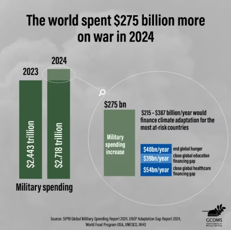 Tukholman rauhantutkimusinstituutin SIPRIn vuosittaisen maailmanlaajuisia sotilasmenoja koskevan raportin julkaisun yhteydessä järjestettävässä tapahtumassa kehotetaan maailmanlaajuisesti harkitsemaan uudelleen sotilasbudjetteja. Tapahtuman tavoitteena on herättää globaalia keskustelua sotilasmenojen uudelleen kohdentamisen tarpeesta elintärkeisiin yhteiskunnallisiin tarpeisiin, ympäristönsuojeluun ja rauhanaloitteisiin.