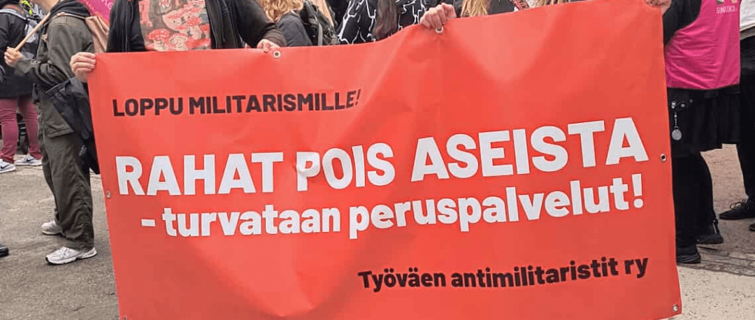Tässä tarvitaan jokaista nostamaan vaalien alla ja niiden jälkeen tunnuksen: ”rahat pois aseista – turvataan peruspalvelut!” Siis enemmän voita, vähemmän tykkejä! Ja tähän kietoutuen: ”Suomi ulos NATOsta, NATO ulos Suomesta!” Näiden vaatimusten taakse Työväen antimilitaristit asettuu. Tätä työtä emme tee ainoastaan Suomen kansan hyvinvoinnin vuoksi, vaan koko mantereen ja maailman tulevaisuuden vuoksi, uuden suursodan ja maailmanpalon estämiseksi.