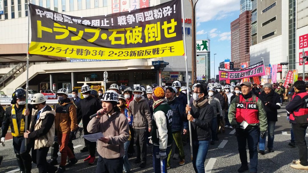 Japanin Shinjukussa sodanvastainen mielenosoitusmarssi ja kokoontuminen vaati esimerkiksi Okinawan sotilastukikohdan sulkemista ja vastusti perustuslakimuutosta militaristisempaan suuntaan.