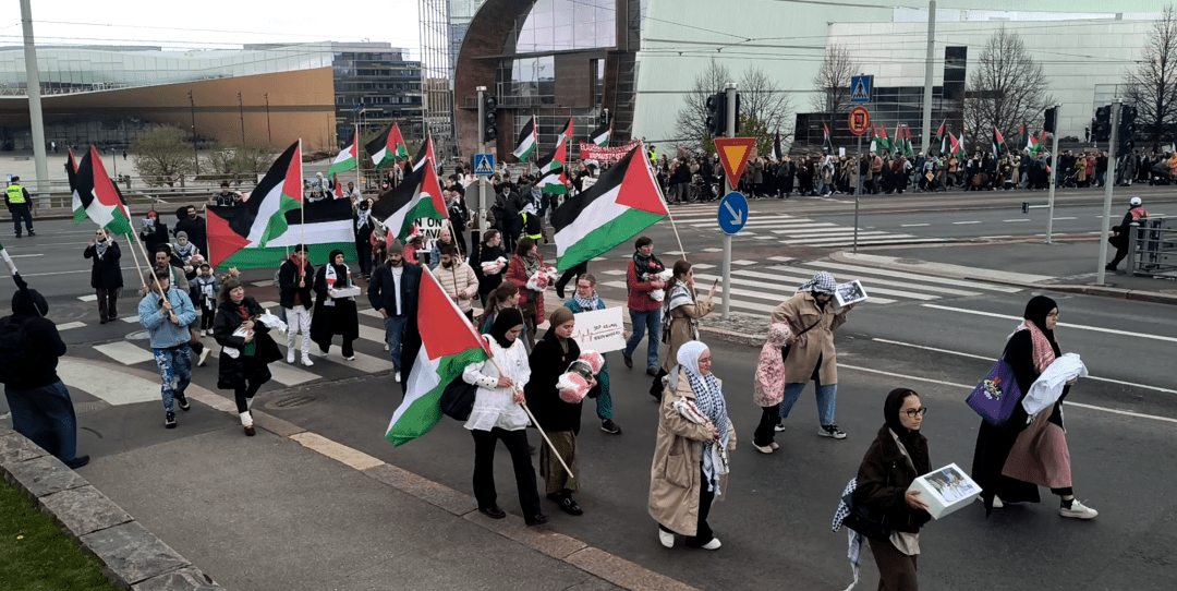 Suomen vappumarsseihin kokoontui Palestiina-solidaarisuusblokkeja ainakin Oulussa, Kuopiossa, Turussa, Tampereella ja Helsingissä.